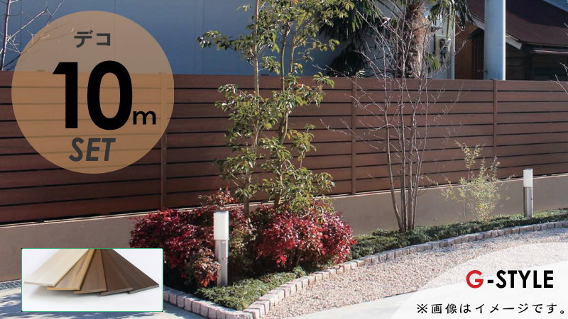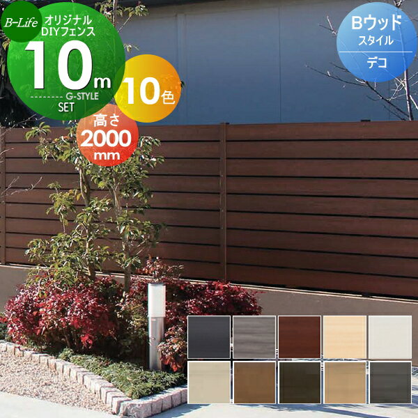 目隠しフェンス オリジナルDIYフェンス Bウッドスタイル デコ 約10M(5スパン分) H2000mm×L9975mm用 組立て部材セット ウッドスタイルフェンスセット 人工ウッド 人工木材 樹脂製 フェンス横張り 樹脂製フェンス板材