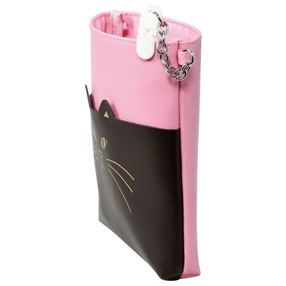PVC素材の大人かわいいペンケースポケットがネコのフェイスでとっても可愛い!大人かわいいデザインのペンケースです。